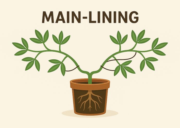 Если необходимо вырастить компактные, но максимально продуктивные растения, мейн-лайнинг – один из лучших вариантов. Этот метод позволяет снизить высоту куста за счет горизонтального распределения ветвей и равномерного формирования соцветий.