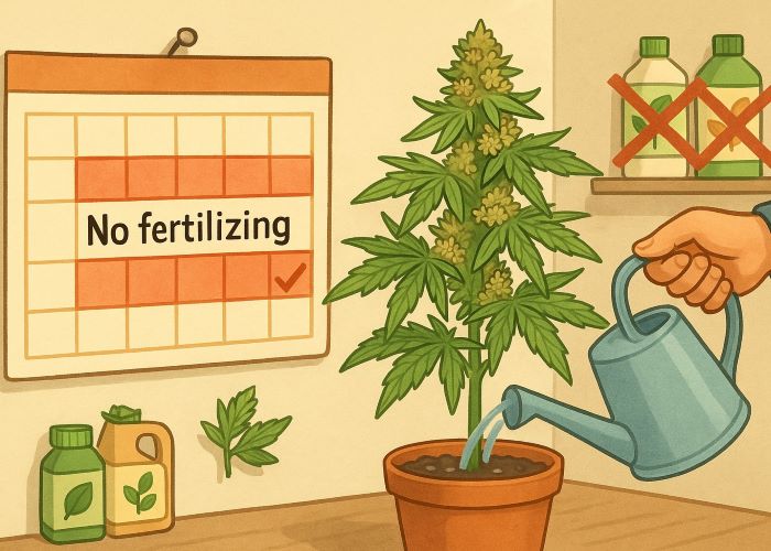Работает ли это? Да, особенно если в течение цветения питание было сбалансированным, без перекорма, и pH-среда не давала перекосов. В таких условиях каннабис успевает переработать остатки солей самостоятельно, и вкус остается чистым без дополнительной промывки.