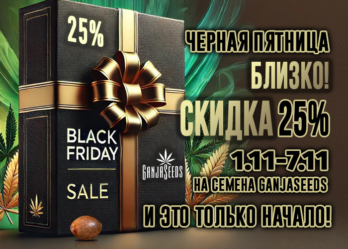 С 1 ноября, все подписчики интернет-магазина GanjaSeeds получат промокоды на скидку 25%, которые будут действовать до 7 ноября. Проверяйте почту и готовьтесь пополнять свои запасы!